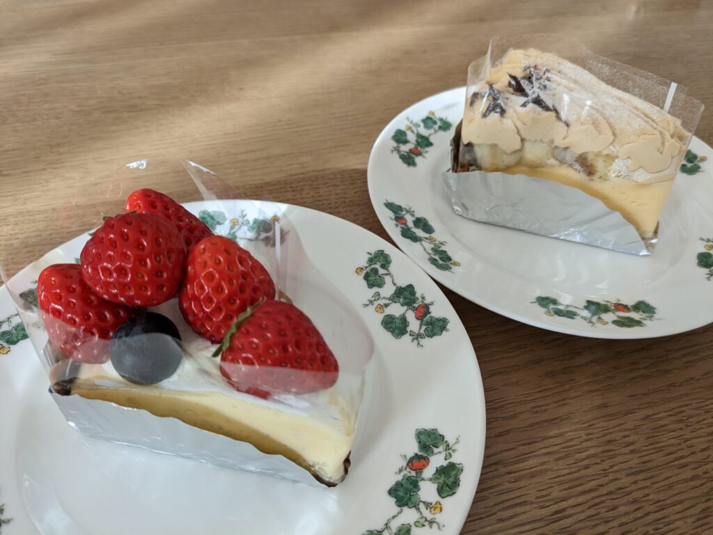 さて、道の駅には「森の小さなお菓子屋さん」というケーキ店があって、テイクアウトでケーキを購入。