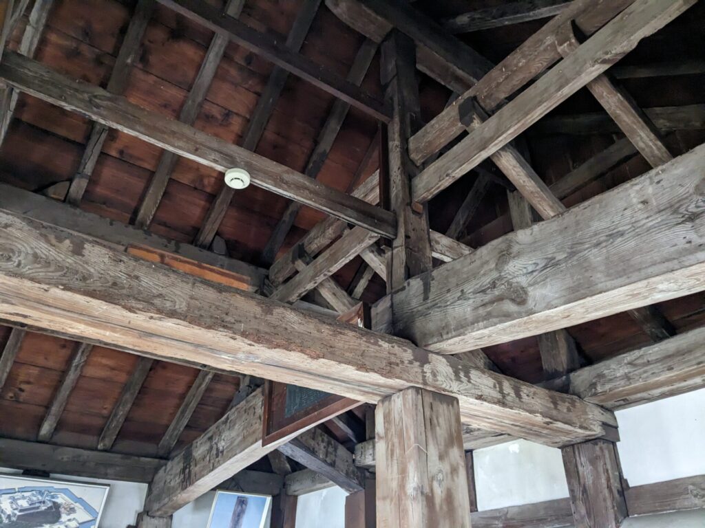 天守は小さいですが、現存天守だけあって、中は木材で組まれていて、歴史を感じさせます。