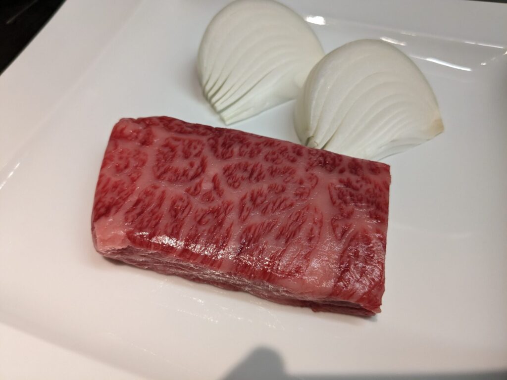 きれいなお肉です(^^)これを、目の前で焼いてくれます。
