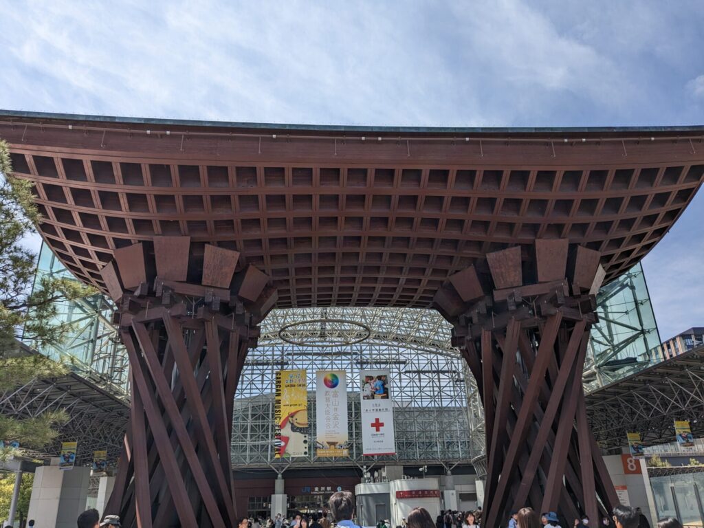 金沢についたのは午後の1時くらい。駅前の広場には、「鼓門」という大きな門があって、そのスケールに驚きました。