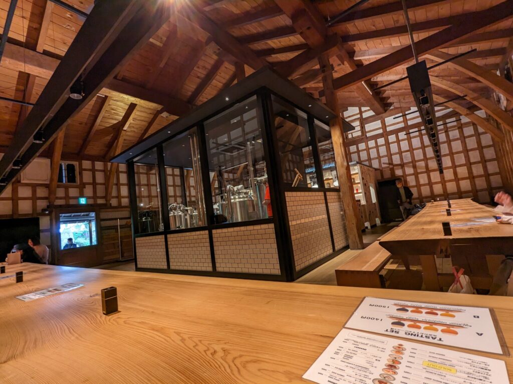 周囲にバーカウンターと客席、中央にクラフトビールの醸造設備がおいてありました。