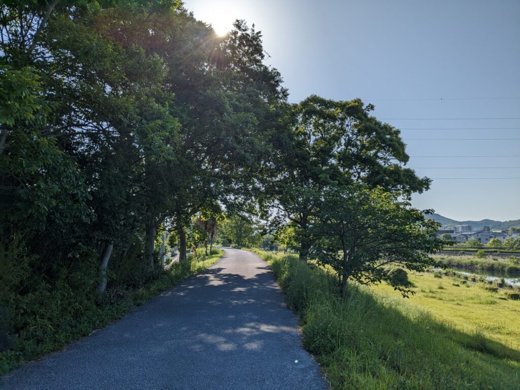 朝倉まではバイパスで、そのあとは鏡川沿いの堤防を走ります。