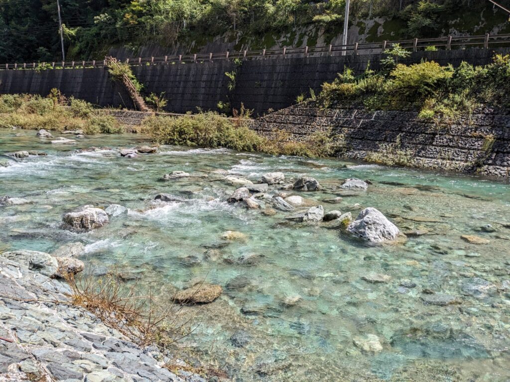トイレに立ち寄るだけのつもりだったのが、隣に流れる川がとてもきれいだったので、近くに降りてみることにしました。