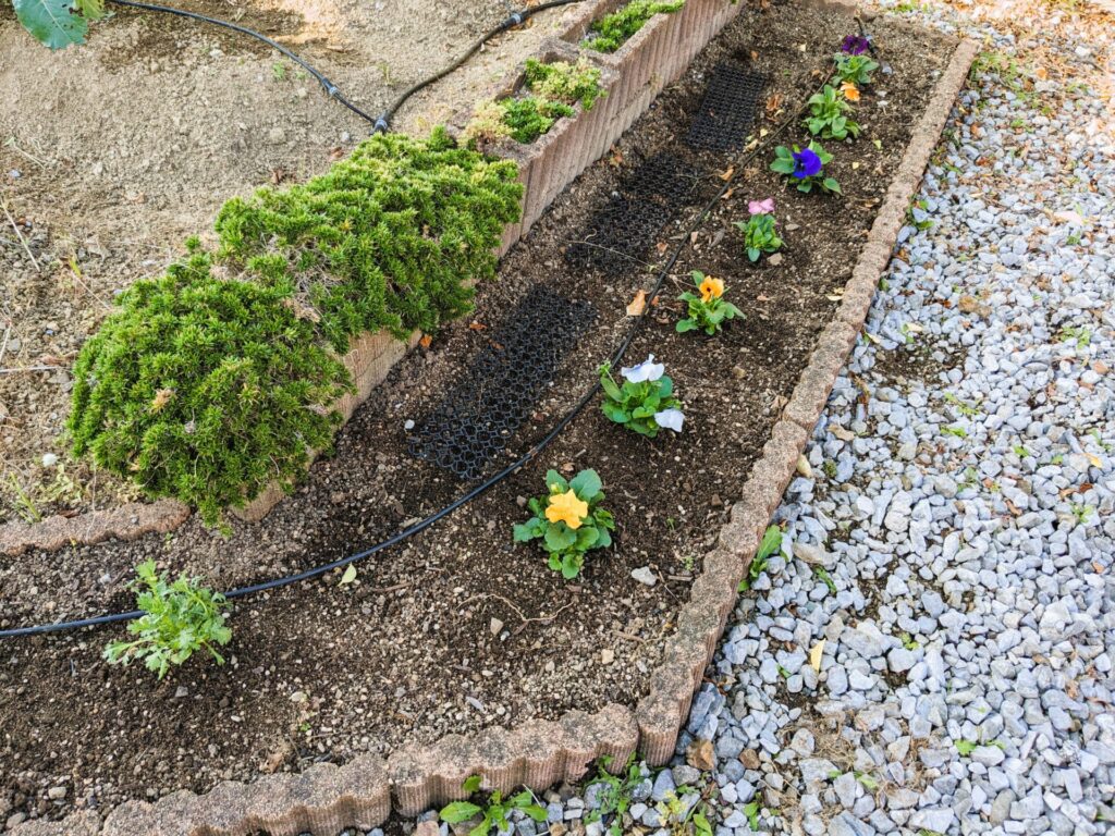 カラフルでとてもきれいですね。花壇に植えたらこんな感じです。