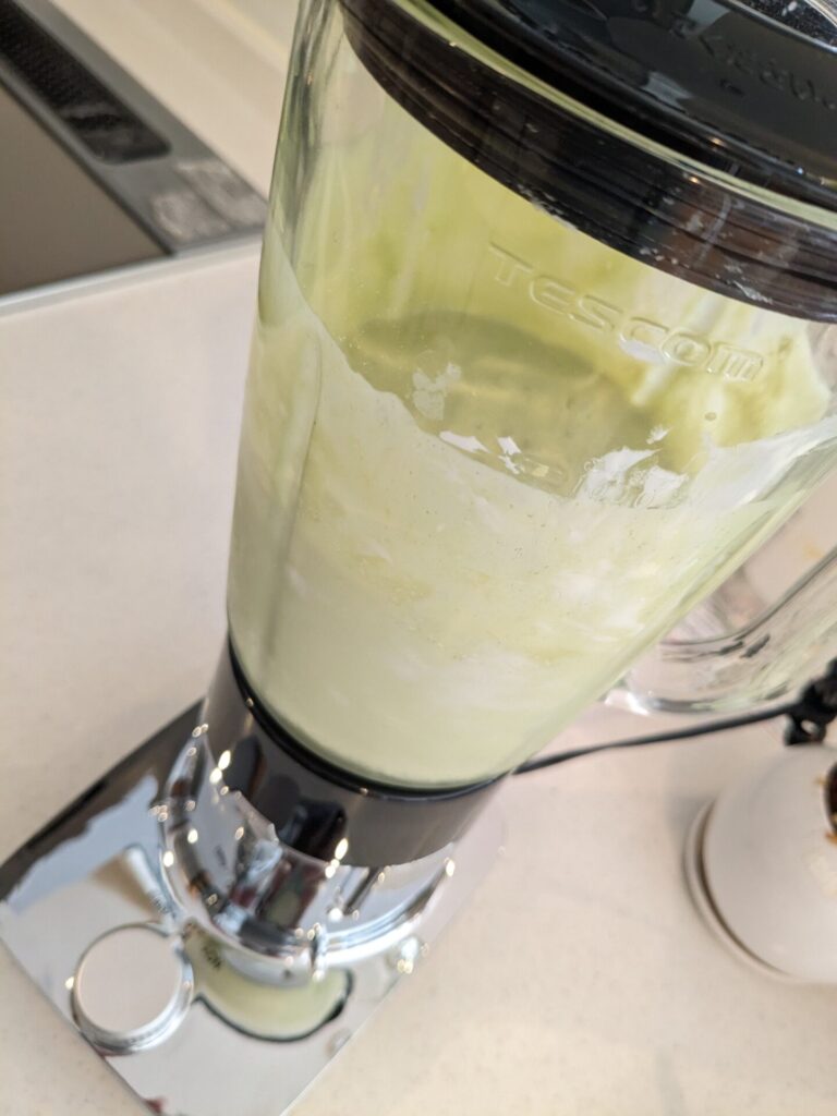 動画では、順番に丁寧に撹拌していましたが、面倒だったので、材料を一気にミキサーに入れ、撹拌することにしました。