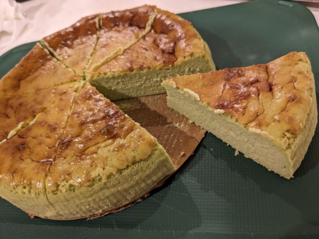 あと、時間があったので、抹茶のチーズケーキを作ってみました。