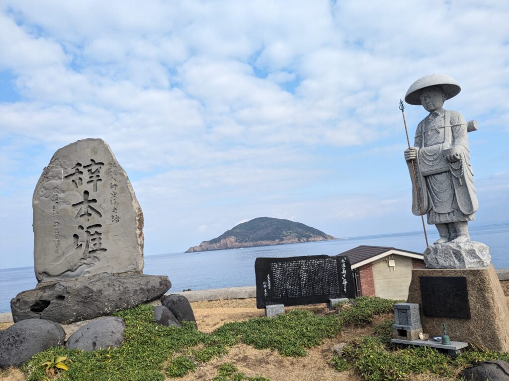 五島列島は、遣唐使船の最後に寄港する日本の地で、空海が日本の見納めとして言葉を残したといわれており、その残した言葉が、碑に刻まれている「辞本涯(じほんがい)」だそうです。勉強になります。