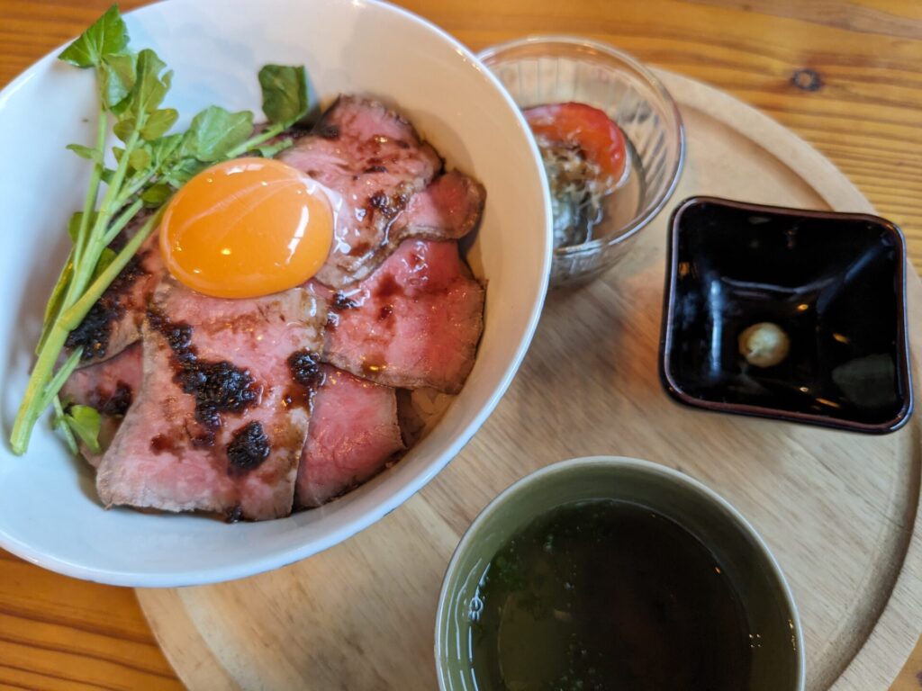 ランチは、五島牛のローストビーフ丼と、五島豚のスペアリブ。