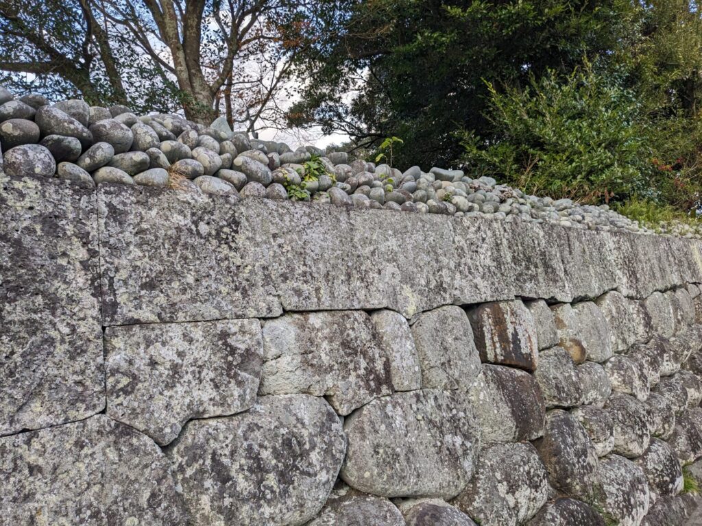 ちなみに、ここの石垣の上には、丸い石が置かれていて、