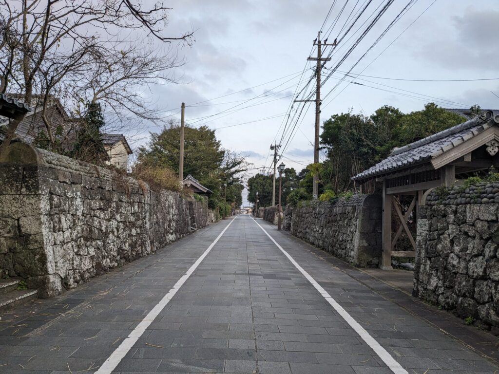 「武家屋敷通り」では、道の両側に立派な石垣が続いていて、