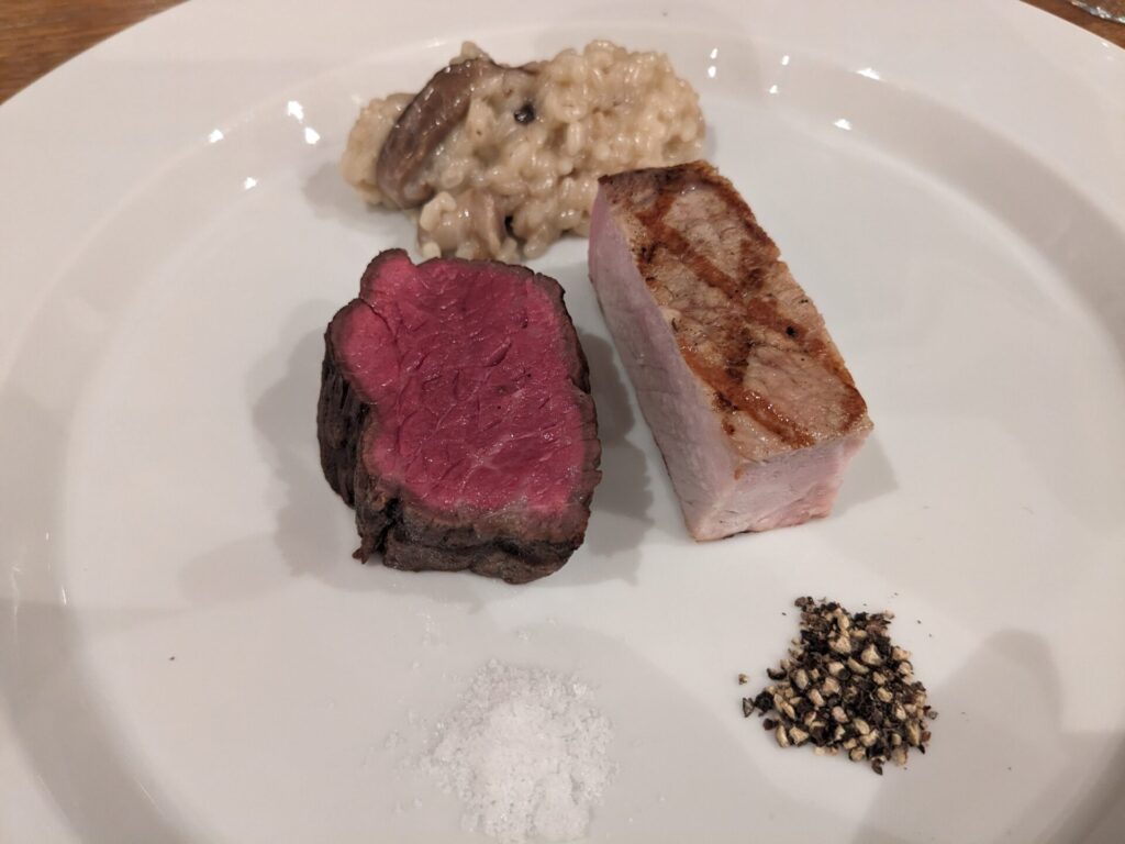 お肉は、五島牛と美豚のビステッカ。