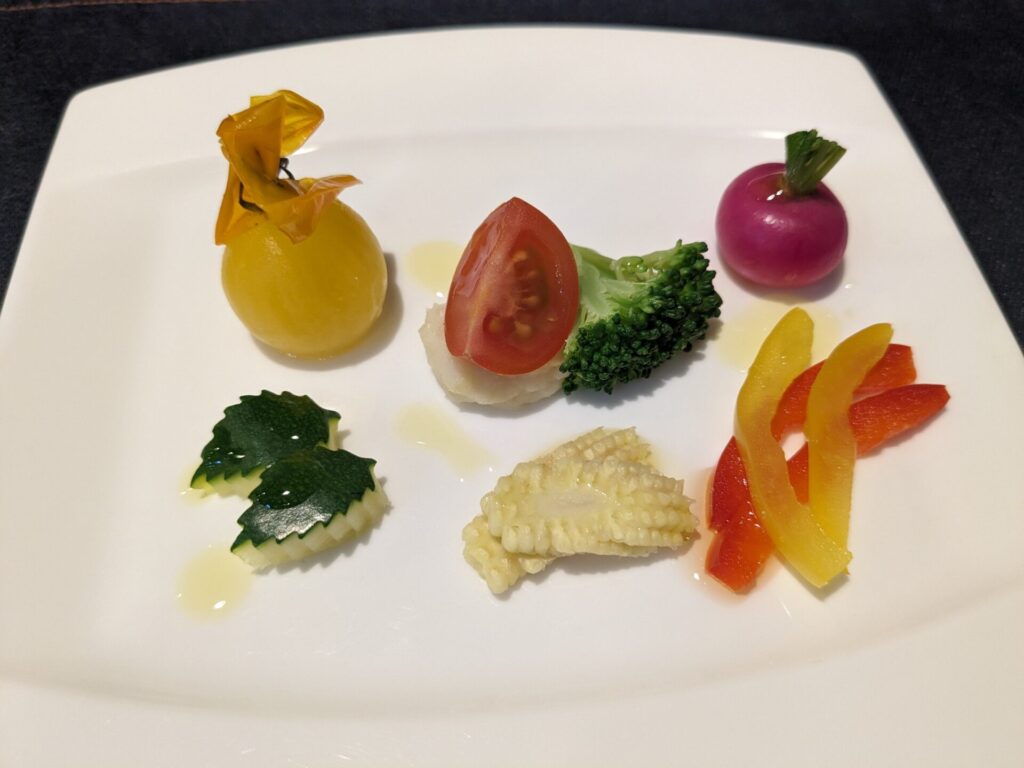 そしてオードブル、スープ、魚料理と続きます。(写真は省略・・)
