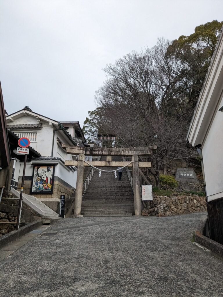 人も少なく、気持ちよく散策できているので、普段ならあまり登ることのない「阿智神社」にも、登ってみることにしました。