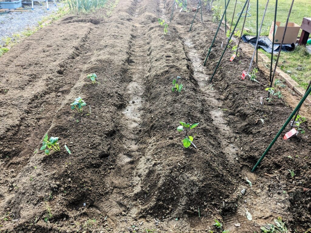 それでも、なんとかここまでやって、昨日買ってきた苗を植えつけました。