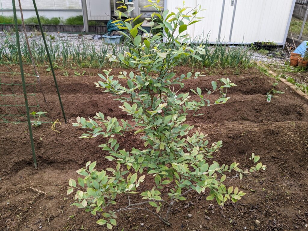 本当は、この時期はブルーベリーの実が大きくなってくるはずなのですが・・・なぜか今年は花を咲かせず、葉っぱが出てきてしましました。しかも、3本すべての木が・・・!