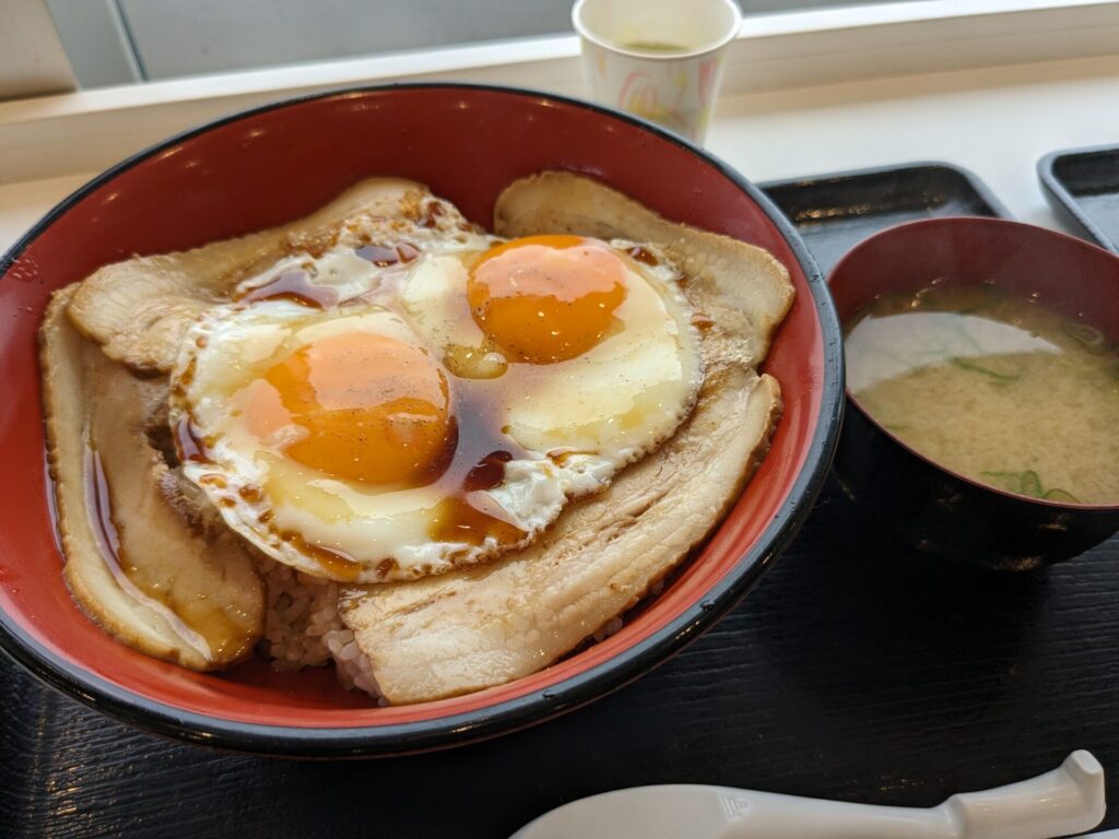 チャーシュー玉子飯がめっちゃ美味しそうです。ちゃんと目玉焼きになってるんですね。