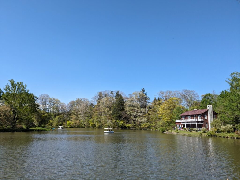 そのあと、塩沢湖の湖畔にある公園に行きました。とても広々とした公園で、すごく気持ちよかったです。