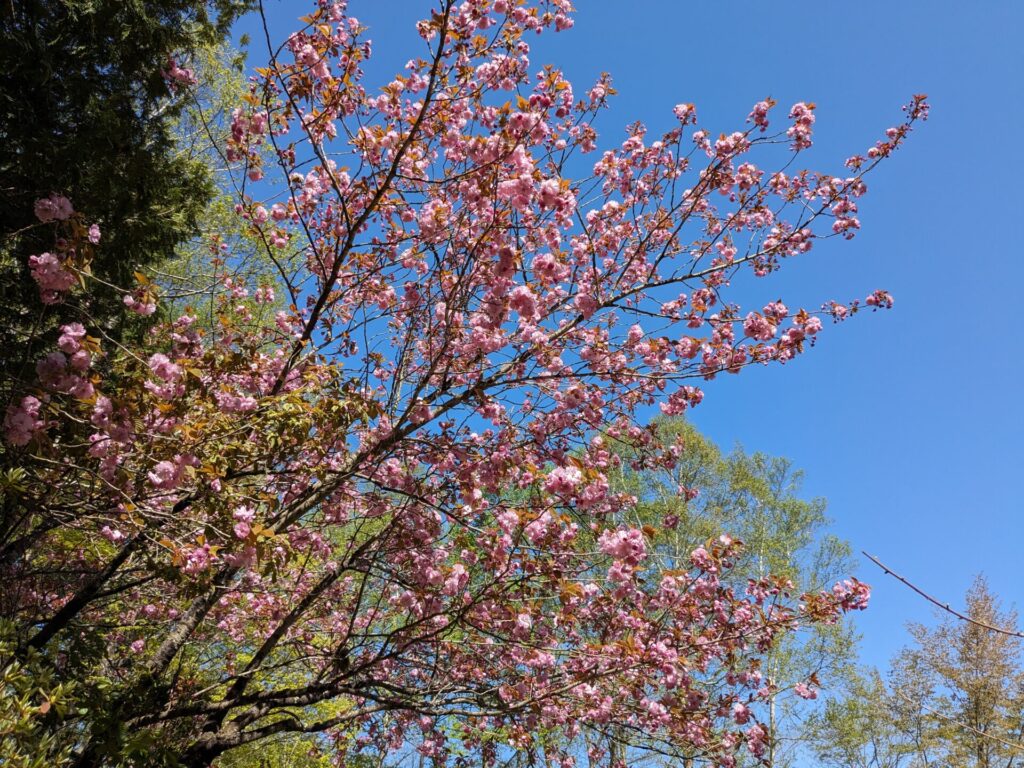 軽井沢には、時々桜が(ソメイヨシノではないものもありましたが)残っているところがあって、やはり避暑地なんだなあ、と実感しました。(今日は暑かったですが(笑))