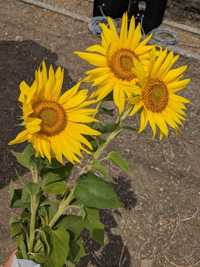 よく吟味して、形の整ったひまわりを3本、選びました♪