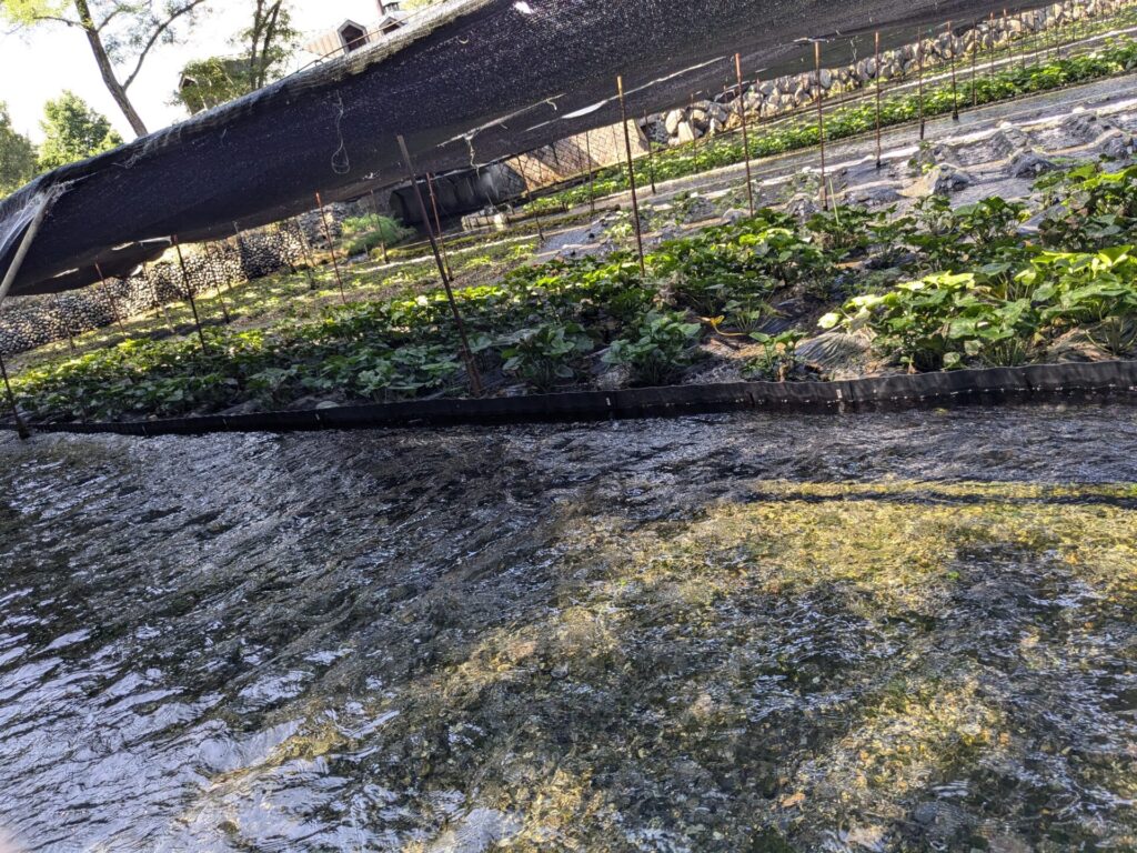 日よけの下を見てみると、こんな感じ。やはり、わさびを育てるにはきれいな水が必要なんですね。