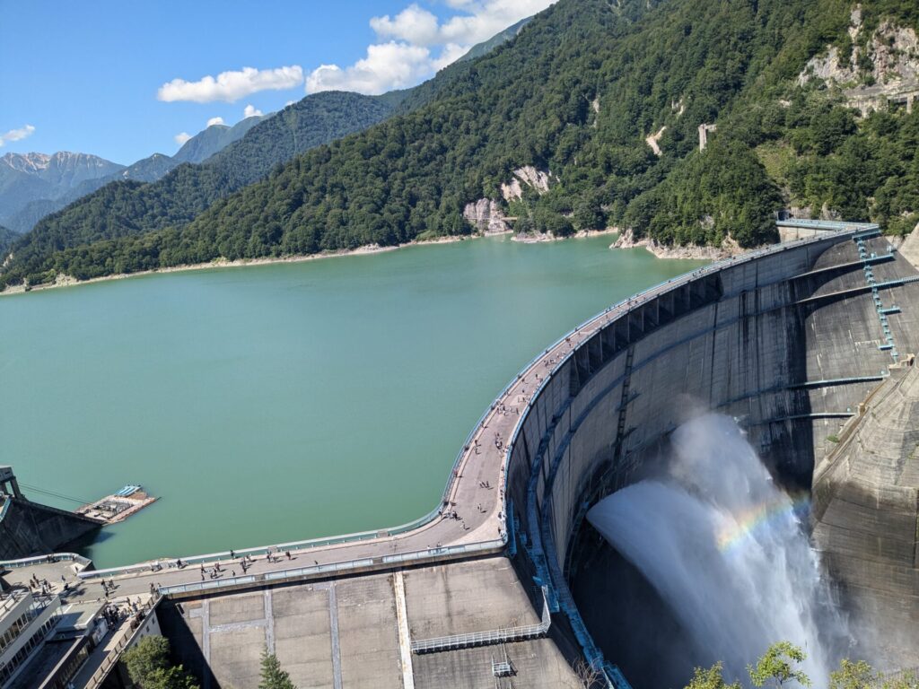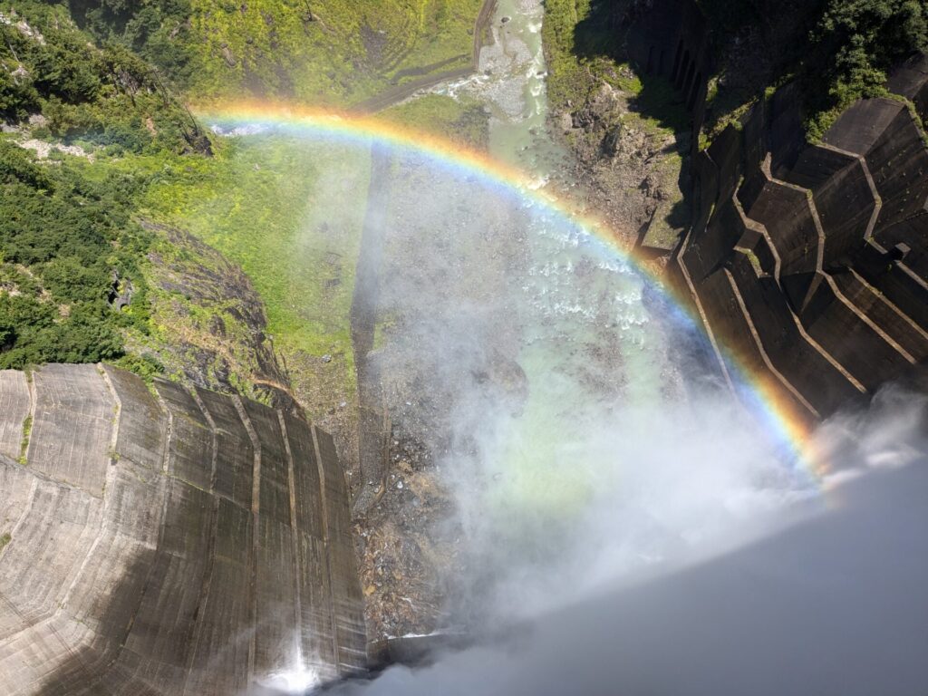 とにかく、ダムの大きさには圧倒されます。こんな大きな建造物を人が作ったなんで、驚きしかありません。今の時期は観光放水をしていて、今日は上の段からの放水もあって、さらに迫力があったのだと思います。