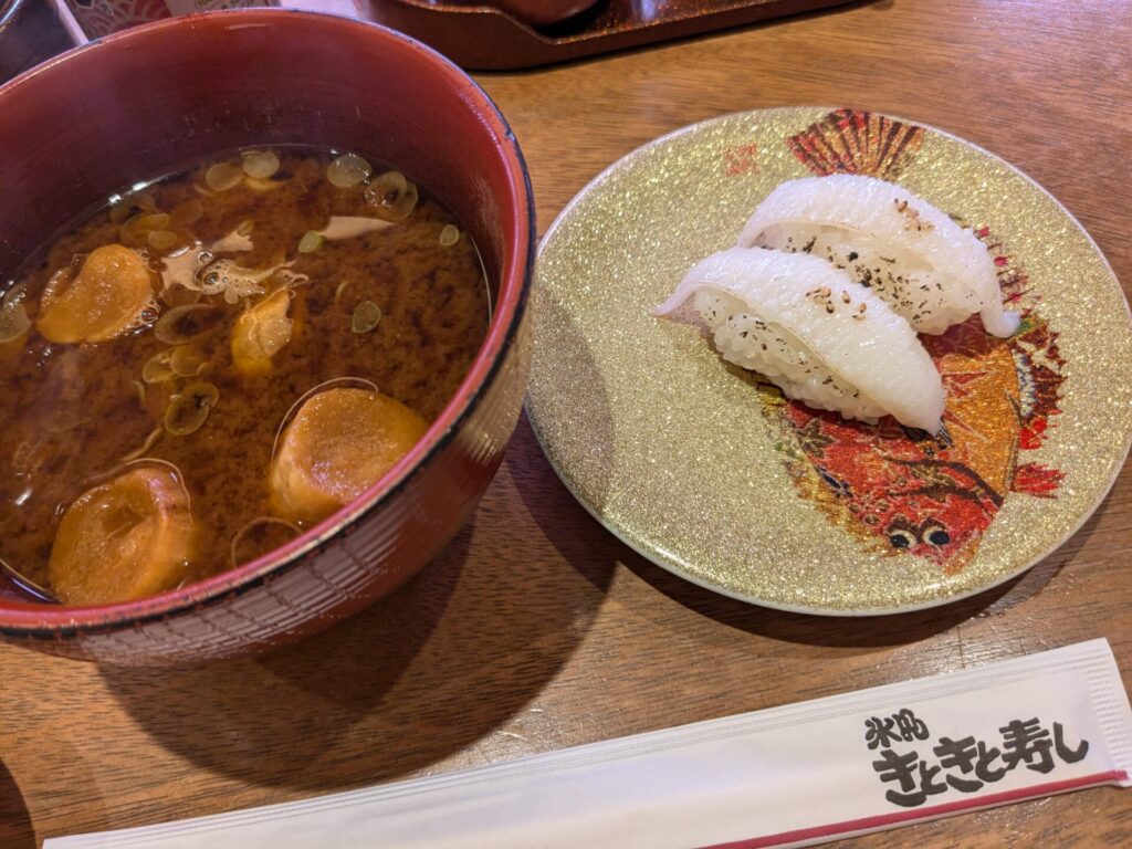 富山では、駅にある「氷見きときと寿司」という回転ずし屋さんで夜ご飯を食べました。