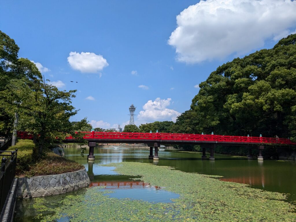 まずは、天王寺公園。ここから見る通天閣はいい感じですね。