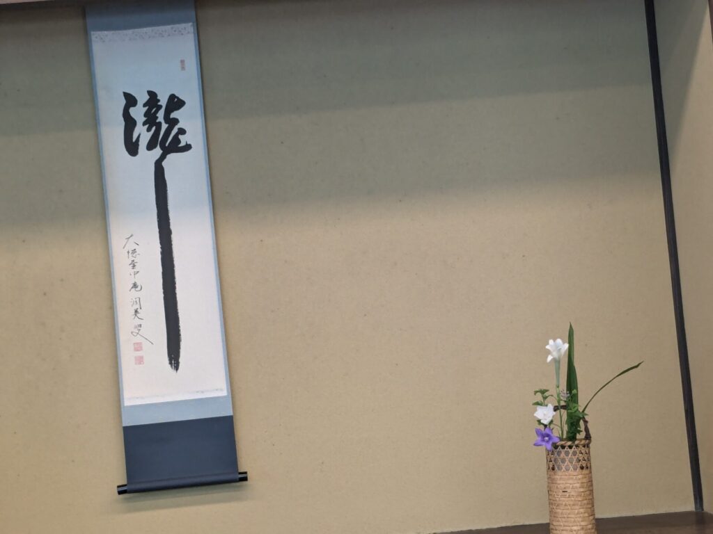 掛け軸は「瀧」の一文字。夏の涼を表しているとのこと。
