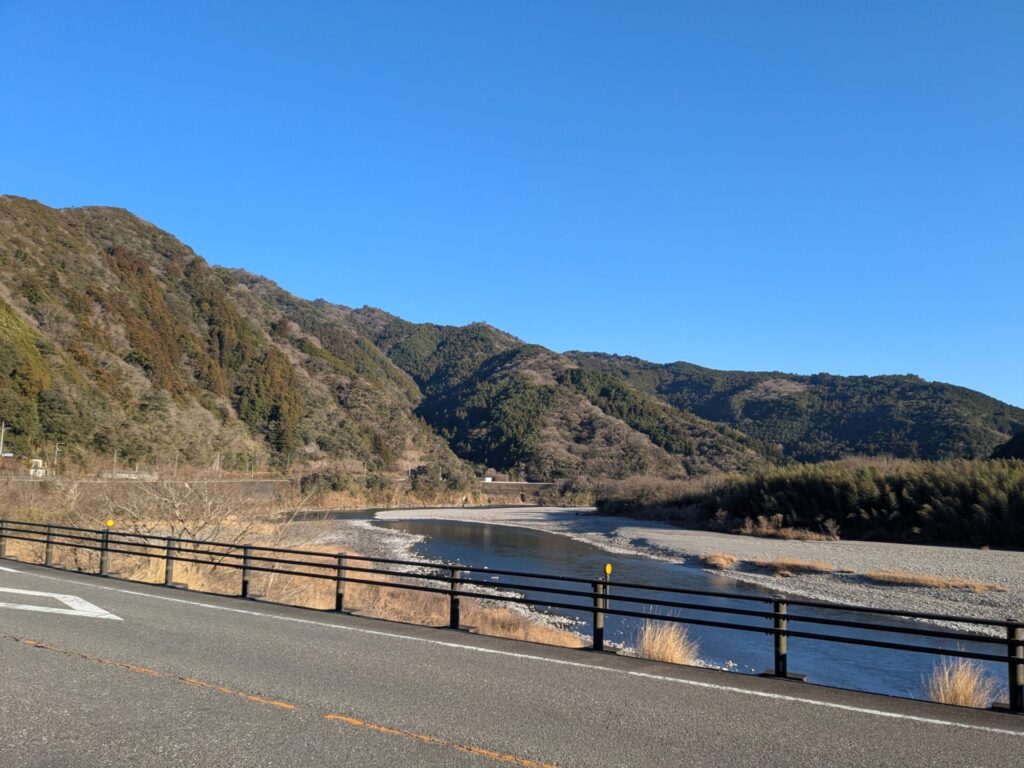 いの町から国道33号を走り、小村神社の交差点を北へ。すると、仁淀川西側の道が続きます。