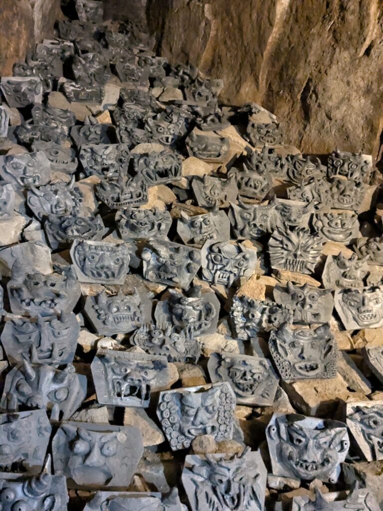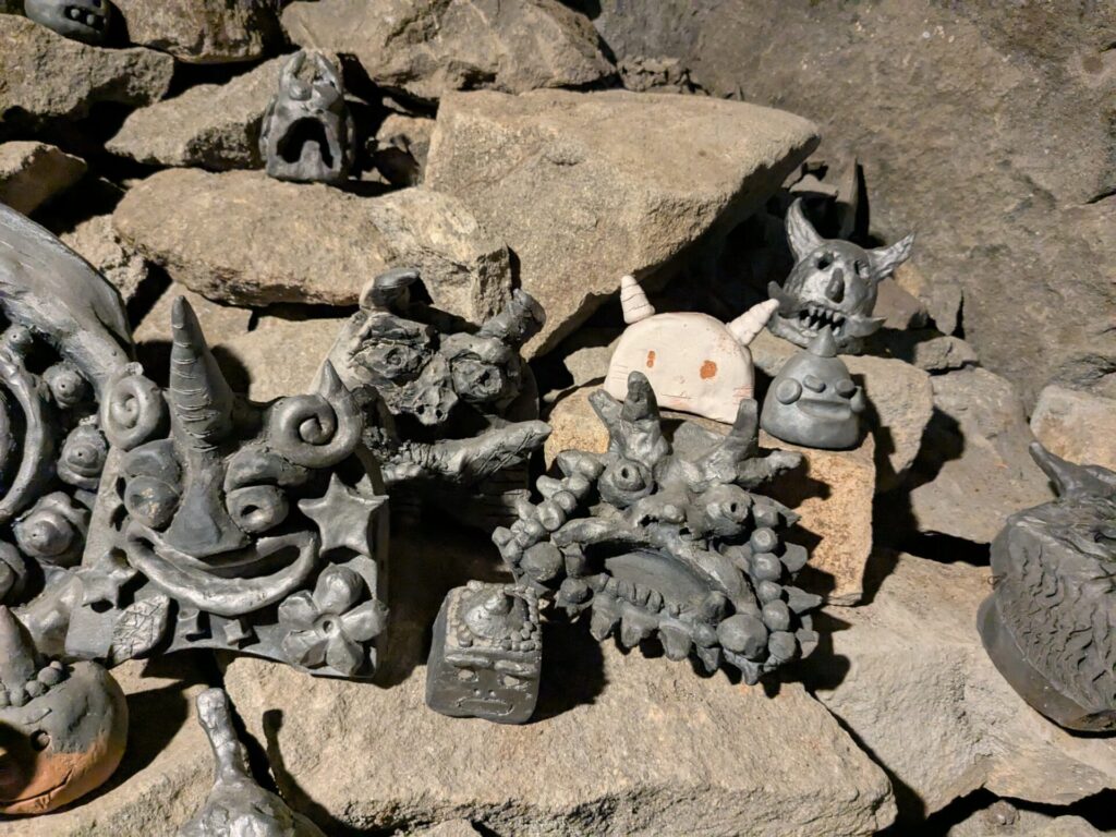 中は結構ひんやり、そして奥深くまで洞窟が続いていました。今、「オニノコプロジェクト2」という、県内の中学生約3000人が参加して制作した、鬼瓦がいたるところに展示されていて、なかなか見ごたえがありました!