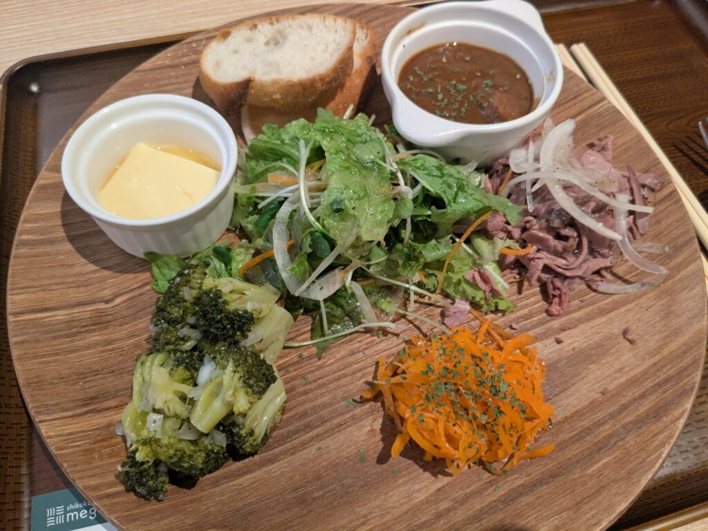 ボロネーゼとおつまみプレート、そして「釜玉めん」を注文。
