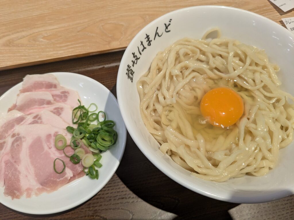 自分的には、釜玉めんはちょっと意外でした。うどんの釜玉みたいに、だし醤油かと思いきや・・・イタリアンみたいなタレが入っていて、びっくり(すごくおいしかったですが)!