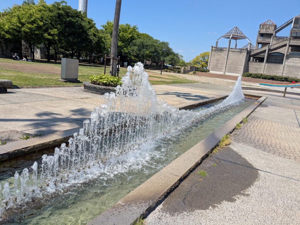 公園の噴水が、瀬戸大橋の形になっています♪
