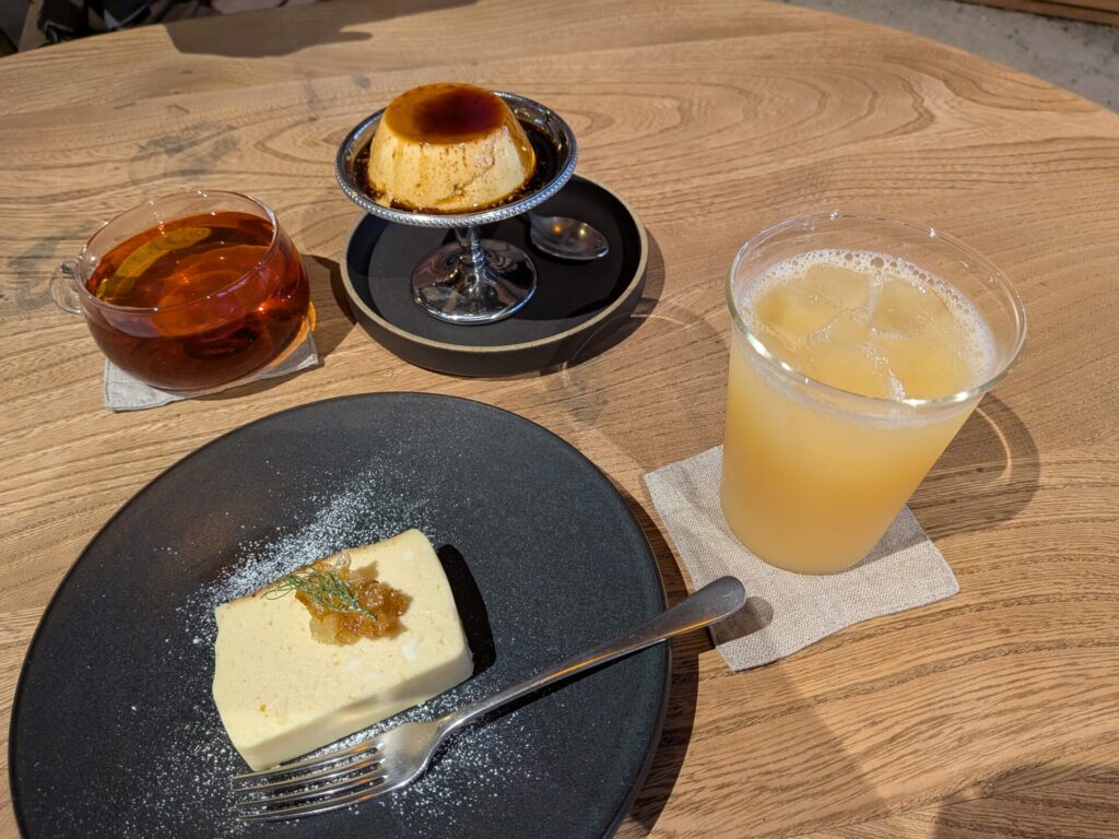 そのあと、浅間温泉街を歩きながら、宿泊するホテルに向かいます。部屋に入ることができるのが15時なので、それまで「哲学と甘いもの」というカフェで、スイーツをいただくことにしました。