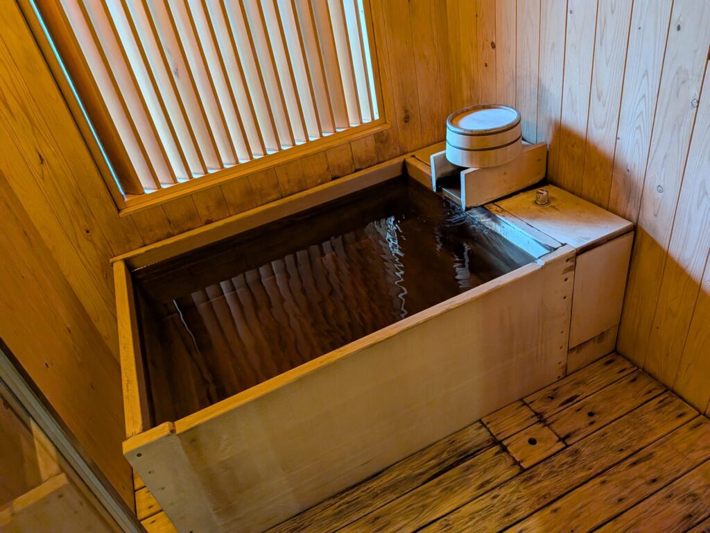 とてもシンプルなお風呂で、ヒノキの香りが心地よく、風も通り抜けていい雰囲気でした。泉質はぬるっとした感じで、体がリラックスできます。