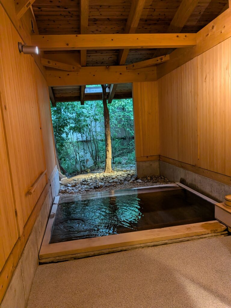 部屋の中に、源泉かけ流しの温泉があるなんて、なんという贅沢!!しかも、ヒノキの香りがとてもリラックスさせてくれます。お部屋のお風呂は後でゆっくり入りたいと思います。