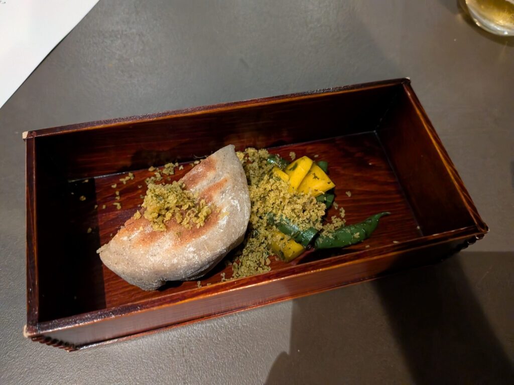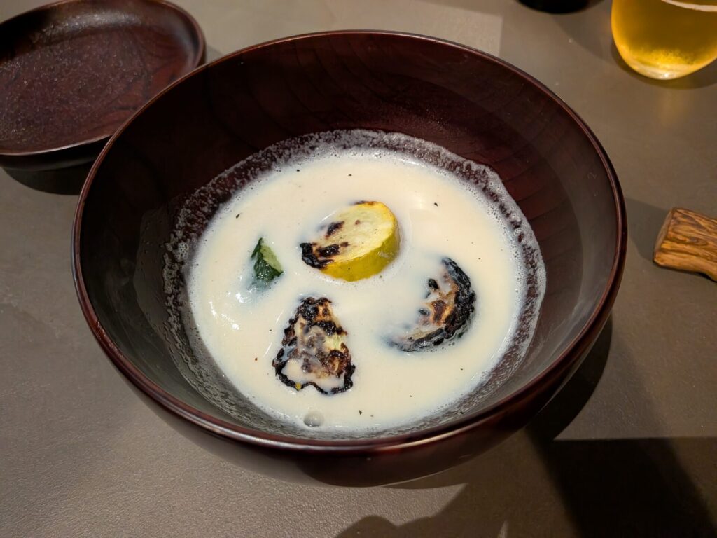 どれもおいしかったですが、「蕎麦焼き餅と鯉のコンフィ」「お野菜豆乳のお出汁」「安曇野放牧豚の薪火焼」がおいしかったです。