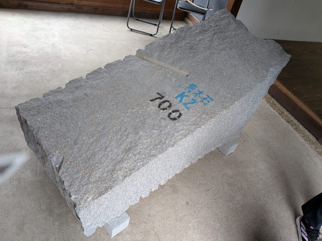 これは青木石という石だそうです。700と書いているので、700kgなのかな?