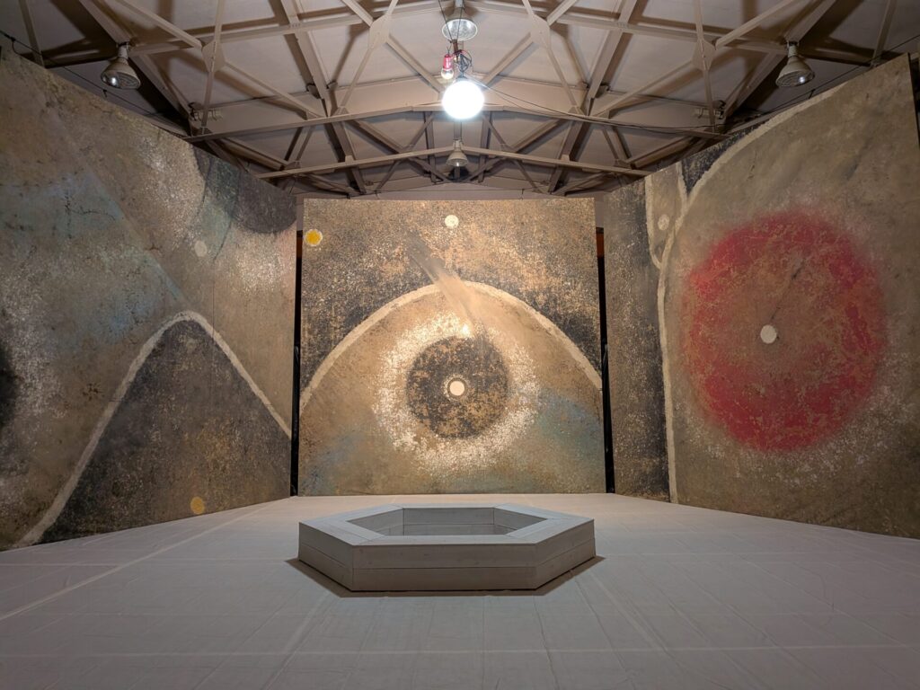 こんな感じでした。外の光がガラス板の中で屈折しながら光っていたことがわかりました。光の性質をうまく使った作品だな、と思いました。