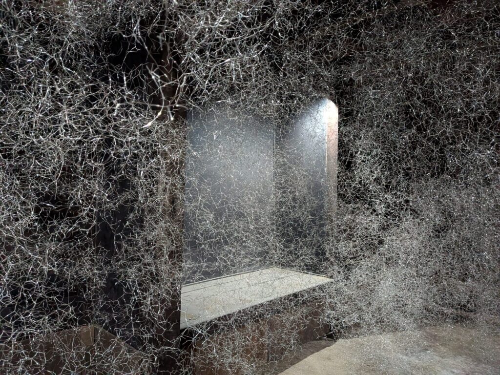 次は「まなうらの景色」という作品。細いステンレス線を無数につなぎ合わせた作品です。
