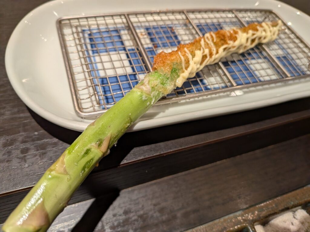 白子や牡蠣、レンコン、アスパラや、変り種ではシャインマスカットなど、いろいろな串を「次は何かな」と楽しみながら食べることができます。