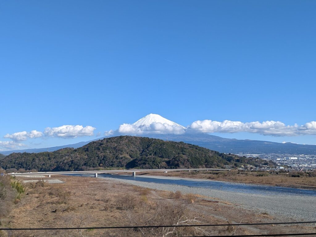 少し筋状の雲がかかっていますが、はっきりと富士山が見えます♪