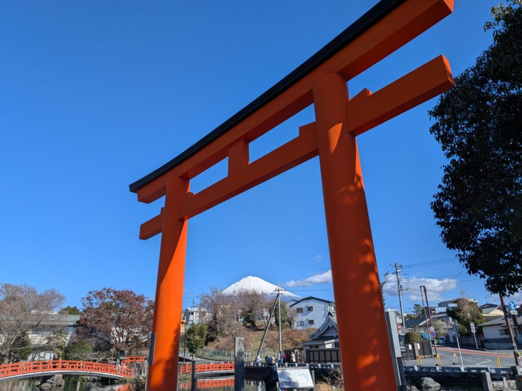 境内には、湧玉池という、富士山の湧水でできた池があって、とっても湖面がきれいでびっくりしました。
