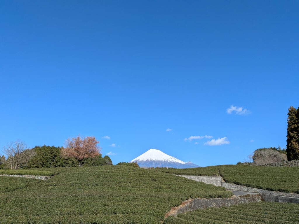 お参りしたあとは、富士の絶景スポットの2つ目、「大淵笹場」というお茶畑に行ってきました。ここは、一面に広がるお茶畑に、富士山が見える、撮影スポットのようです。(ネット情報です)