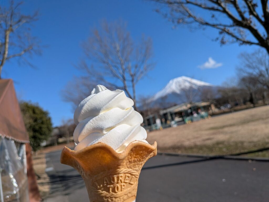 朝霧高原では、あさぎり牛乳でつくったソフトクリームを食べました。