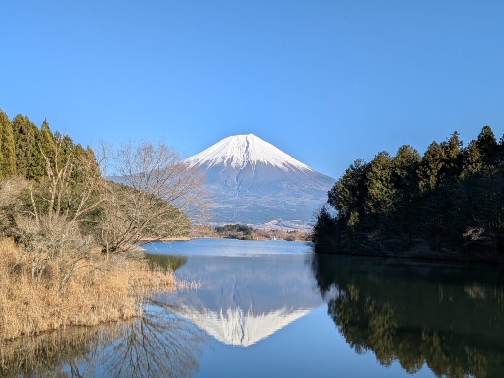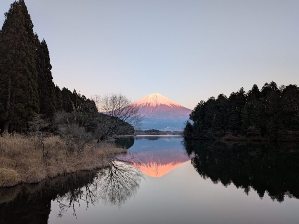見事な「逆さ富士」です♪ こんな美しい風景に出会えるなんて、ここまで来てよかったです。
