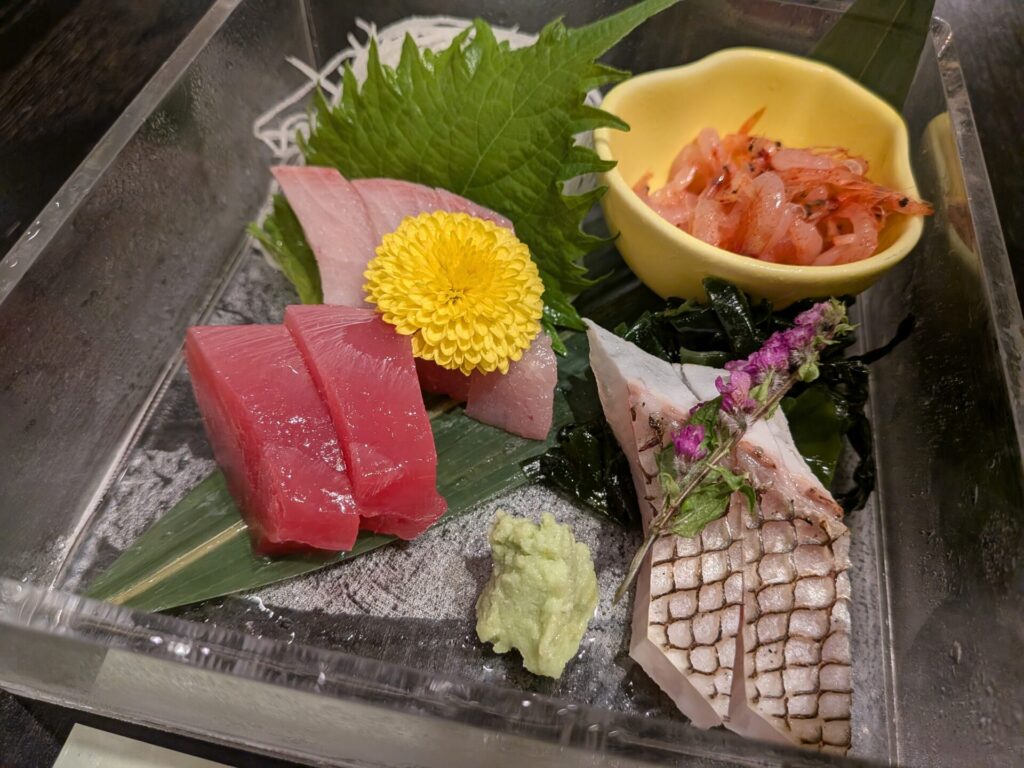 お刺身は、桜えびに寒ブリ、マグロ、鯛でした。生の桜エビ、初めて食べたかもしれません。おいしかったです。