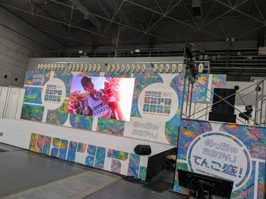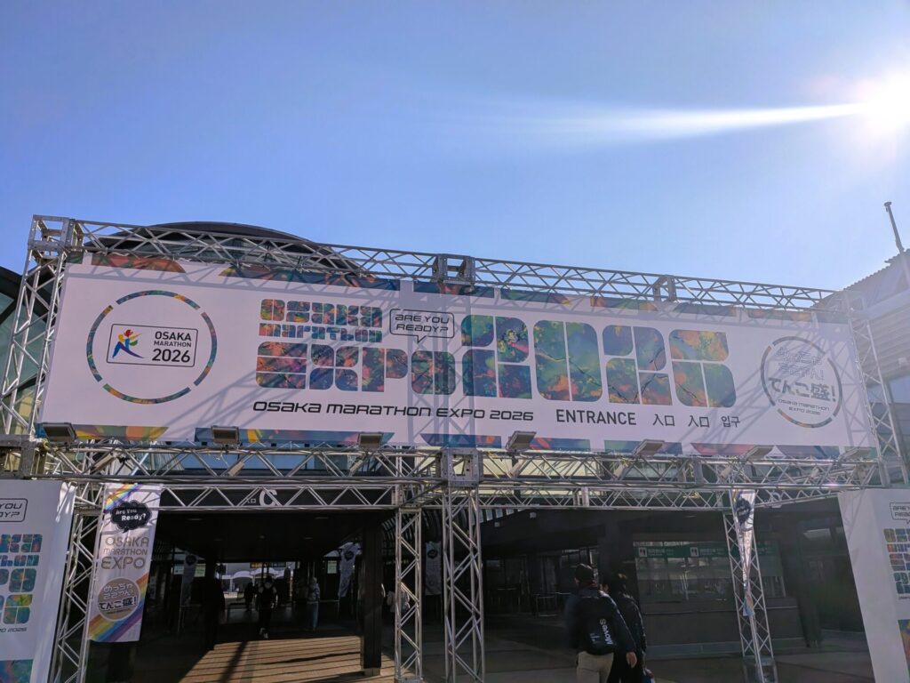 中には、様々なスポンサーがブースを構えていて、とにかく大賑わいでした。ステージでいろいろな催しがあったり、各地のキッチンカーがずらりと並んでいたり・・・さすが大阪マラソン、規模がすごいです。自分は、記念にTシャツと、お土産を少し買いました♪