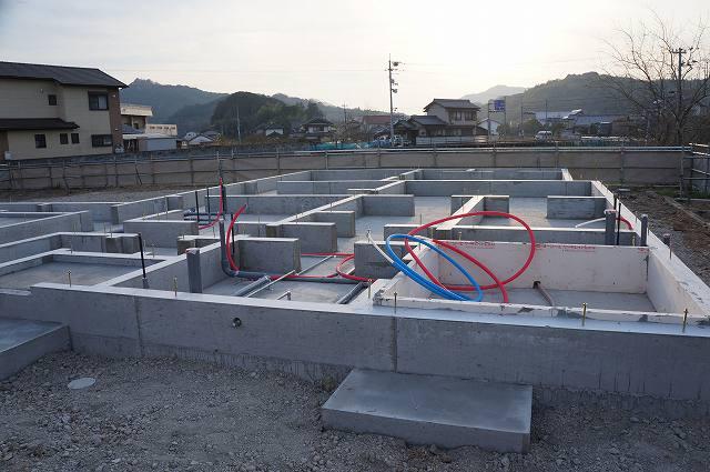 基礎を近くで見ると、玄関やポーチ、勝手口などもちゃんとできていて、また、水道やガスの配管も埋め込まれていました。