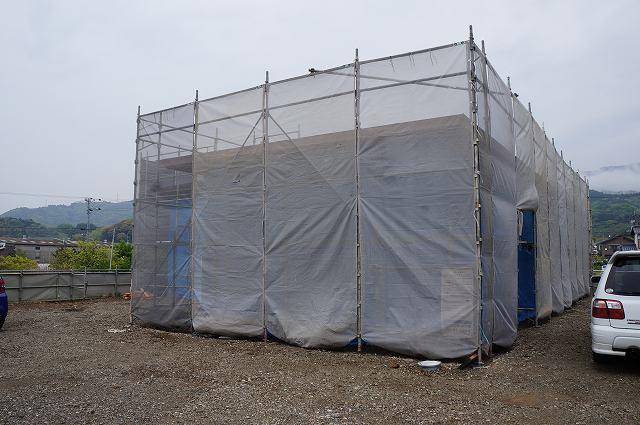 外観は・・・シートが張っているので中が分からないようになっていました。